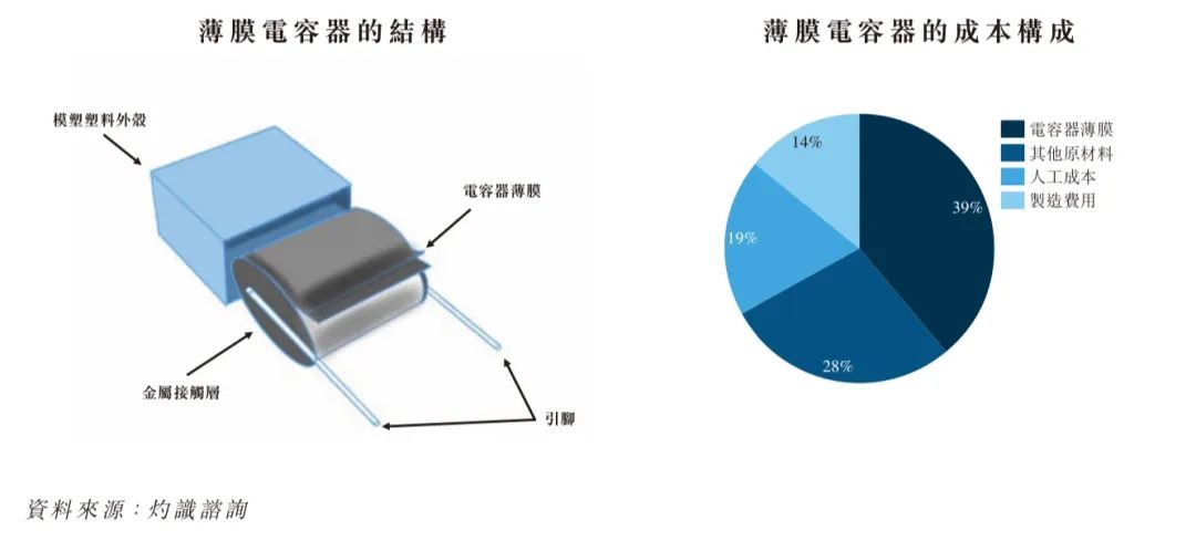 电容器薄膜是以聚合物为基础的薄型介电材料 神马影视,广泛用于薄膜电容器的生产,以在电子电路中起到电气绝缘和能量储存的作用,是薄膜电容器的核心材料,在决定电容器的性能和耐用性方面发挥至关重要的作用,在薄膜电容器的成本构成中,电容器薄膜是最大的一项支出,占总生产成本的39%,约占原材料成本的60%。