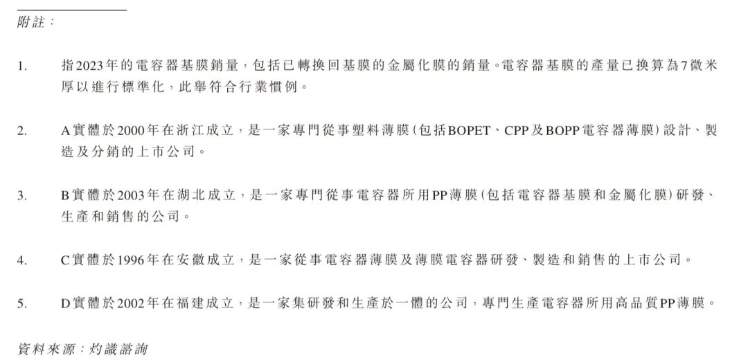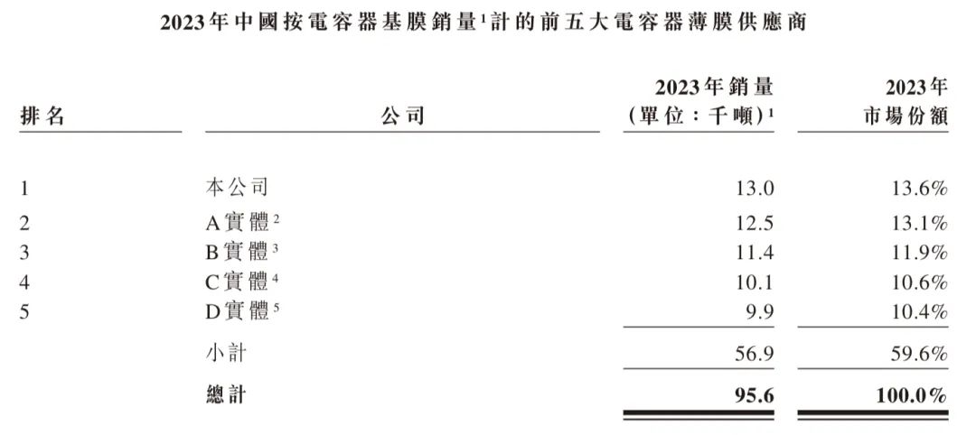 以电容器基膜的销量计算,海伟电子是中国市场最大的电容器薄膜提供商,2023 年的销量达到13.0 千吨,占13.6% 的市场份额。