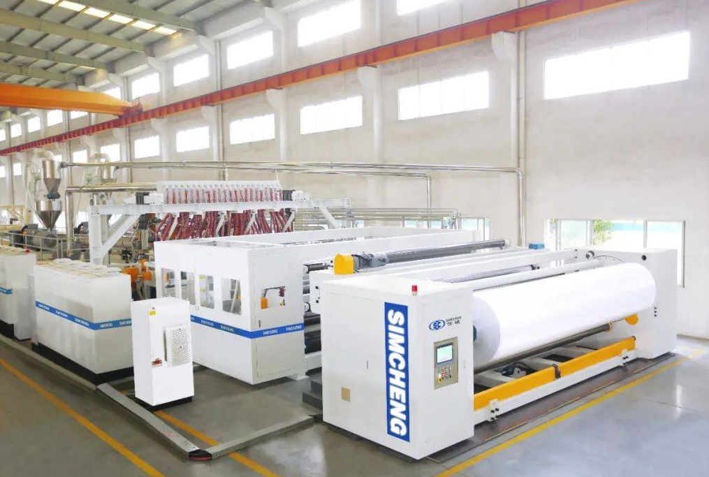 从铸片机出来的厚片,会在纵向拉伸机组中被加热到一定倍数的高弹态,然后进行纵向拉伸。纵向拉伸机主要由预热辊、拉伸辊、冷却辊、张力辊和橡胶压辊、红外加热管、加热机组以及驱动装置等组成。常见的纵向拉伸方式为单点拉伸,不过也存在多点拉伸的情况。纵拉比是通过慢拉辊与快拉辊之间的速度差产生的,一般控制在3.3 - 4倍。